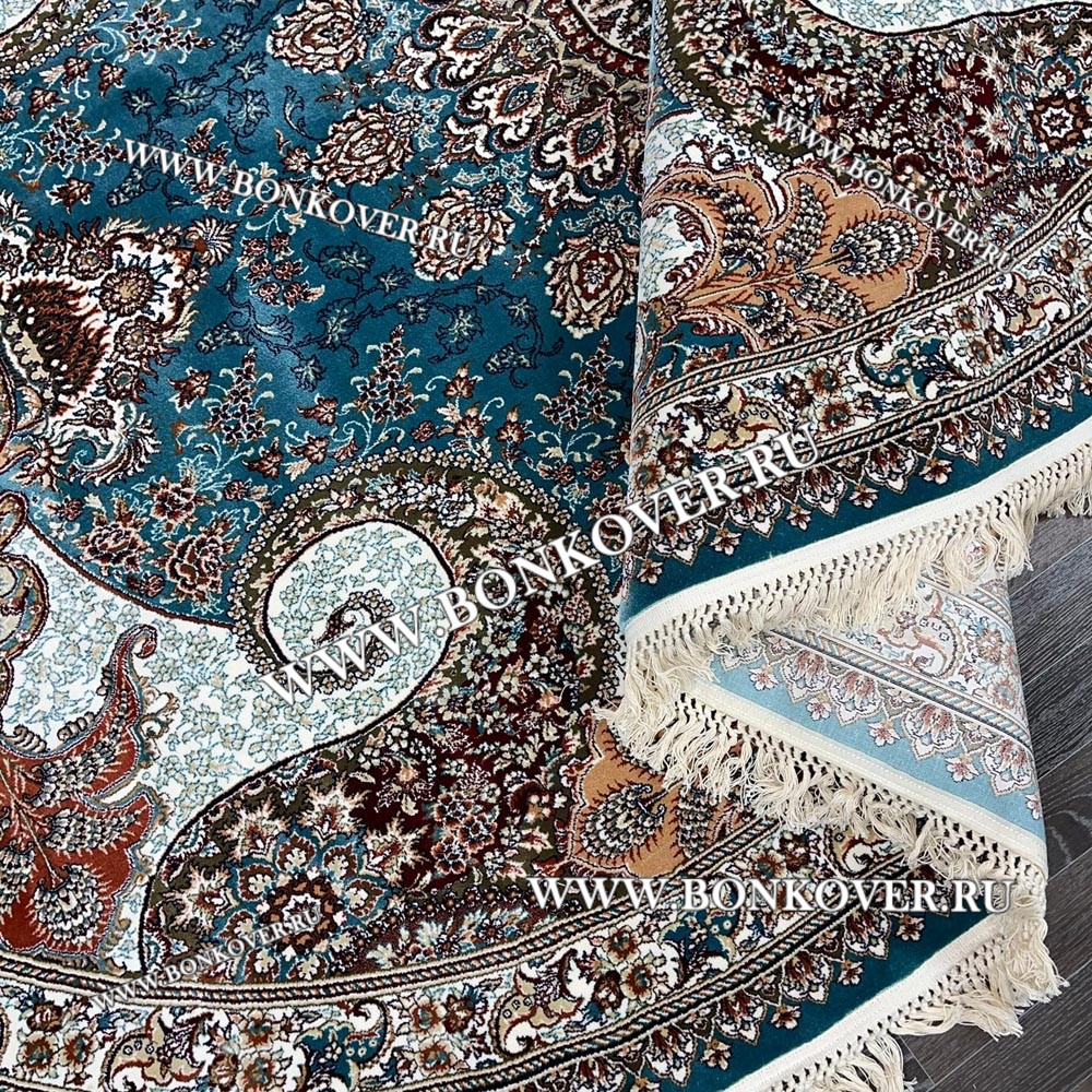 Красивый Иранский ковер дизайн 22 Синий Овальный наполняет интерьер вашего дома теплом и уютом, гармонично сочетает в себе изящество и стиль. Он выполнен из экологически чистого сырья, прочный и долговечный.