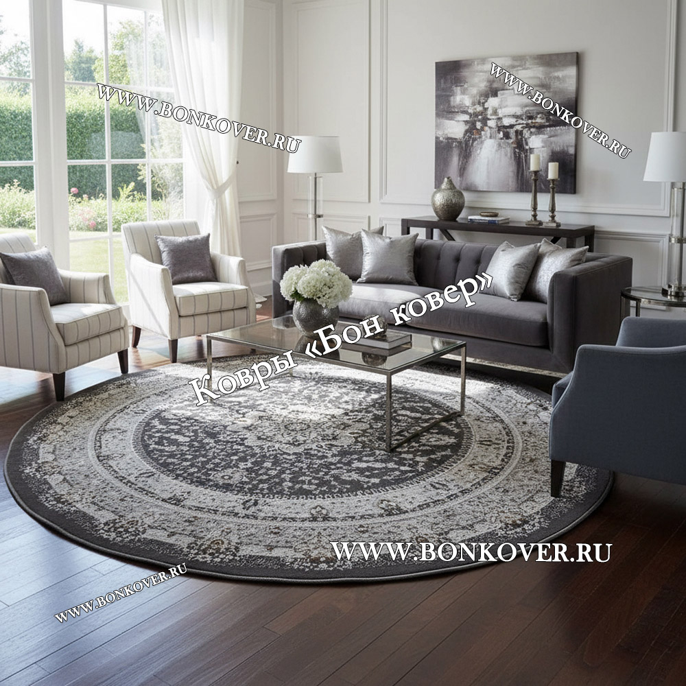 Ковер Для гостиной дизайн 68 Турция Серый Круг станет внезапным преображением жилого помещения, подчеркивая высокий статус семьи владельца.