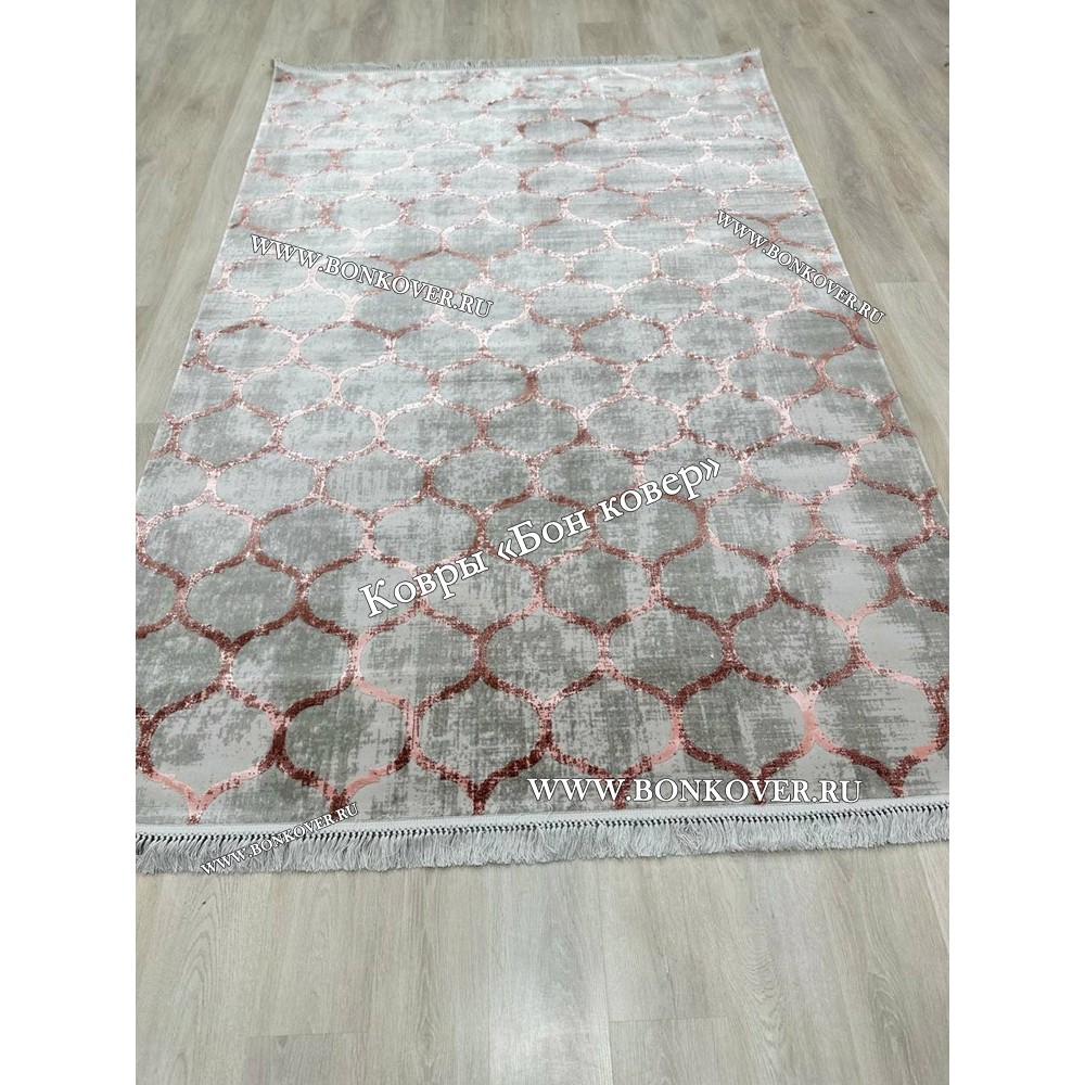 Элегантный Современный Геометрический Ковер Дизайн 30667 Серый с Розовым наполняет интерьер вашего дома теплом и уютом, гармонично сочетает в себе изящество и стиль. Он соткан из экологически чистого сырья, прочный и долговечный.