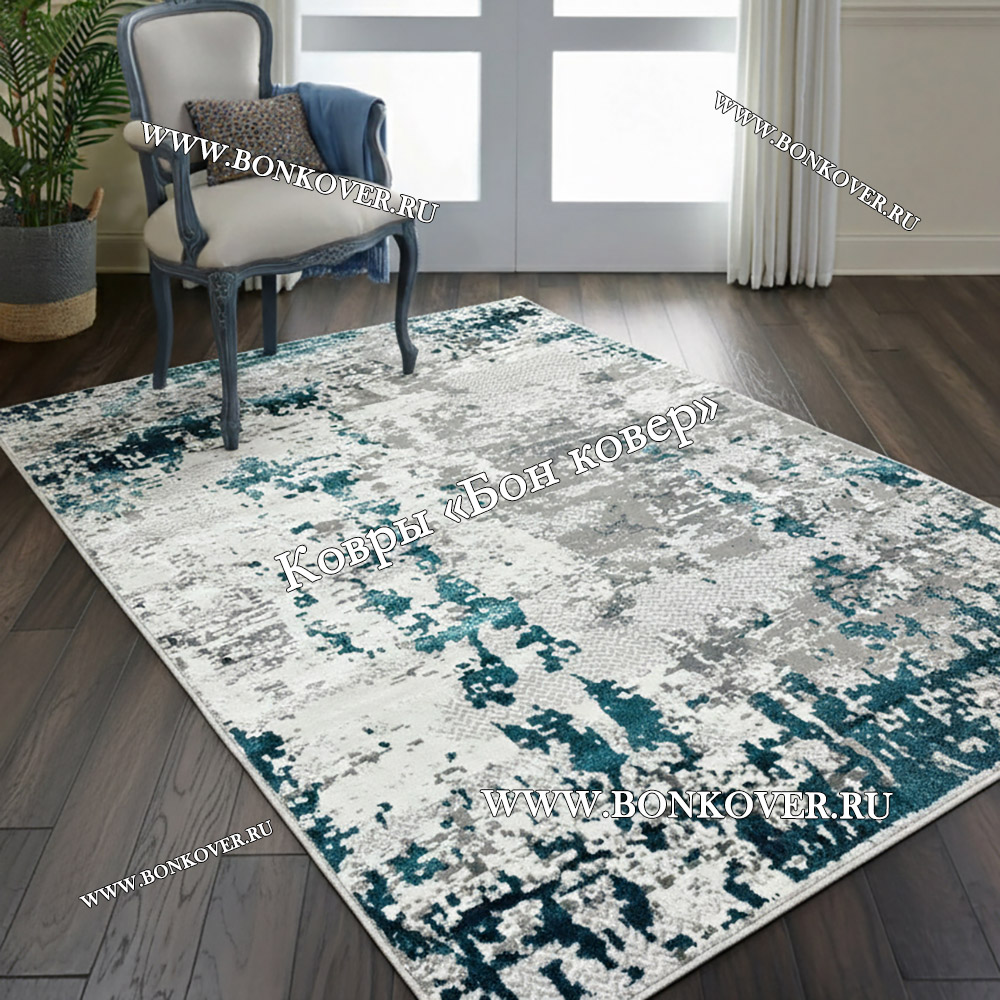 Современный ковер для комнаты 03 Бирюзовый станет великолепным преображением жилого помещения, подчеркивая высокий статус семьи владельца.