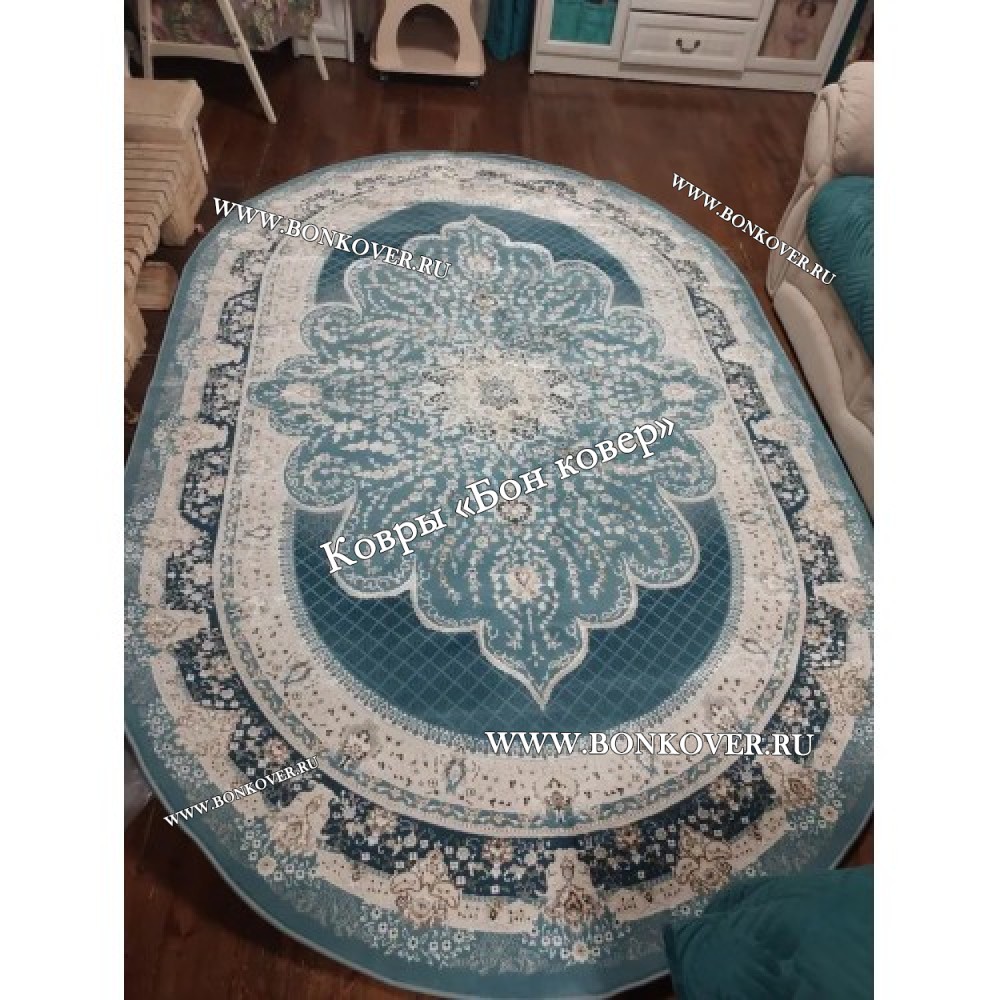 Турецкий Ковер Для гостиной New дизайн 079 Овал станет гармоничным дополнением интерьера, оформленного в современном или классическом стиле. Мягкое, но прочное, ковровое изделие обеспечивает тепло- и шумоизоляцию, отличается длительным периодом эксплуатации, пожаробезопасностью, экологичностью и высокой износостойкостью, является отличной преградой от повышенной влажности в комнате и утеплителем для холодного пола. Благодаря качеству материалов, ковер не деформируется, сохраняет первоначальный вид под тяжестью предметов мебели. За его поверхностью легко ухаживать.